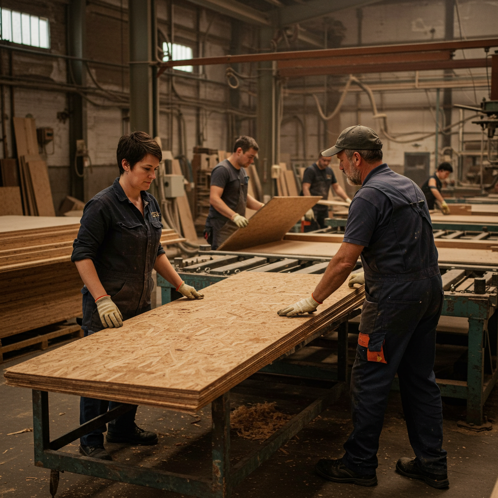 After pressing, the plywood panels are trimmed to the desired dimensions to ensure square edges and remove any excess material.